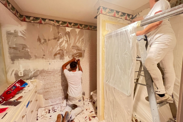 Once two coats of paint are applied, the plastic is removed. The floor protection is then carefully peeled up and the furniture is replaced in their original spaces and the clean-up process begins. The wall covers, lights, etc are reinstalled and all trash is removed. The final result is a freshly painted, clean, and organized living area to enjoy! -Jordan Smith